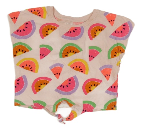 Světlerůžové crop tričko s melouny a uzlem Primark