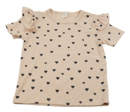 Růžové žebrované tričko se srdíčky a volánky Shein
