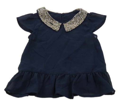 Tmavomodré šifonové tričko s límečkem z kamínků