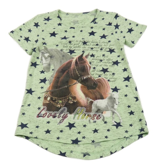 Světlezeleno-tmavomdrá melírovaná tunika s koníky