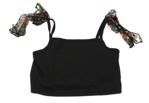 Černý žebrovaný crop top s puntíkovanými mašlemi