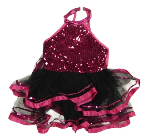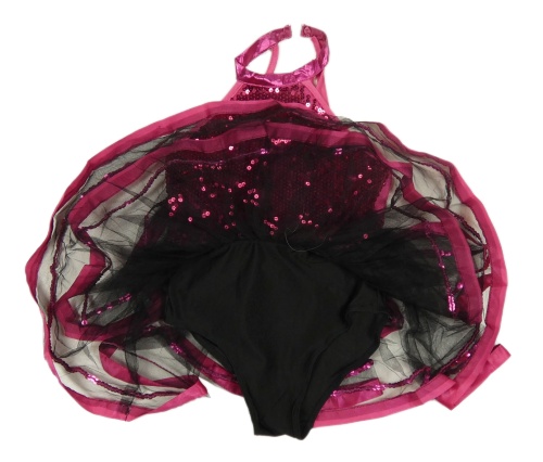 Tmavorůžovo-černé cvičební body s tylovou vrstvenou sukní a flitry iEFiEL