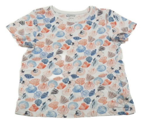 Bílé tričko s modro-červenými mušlemi