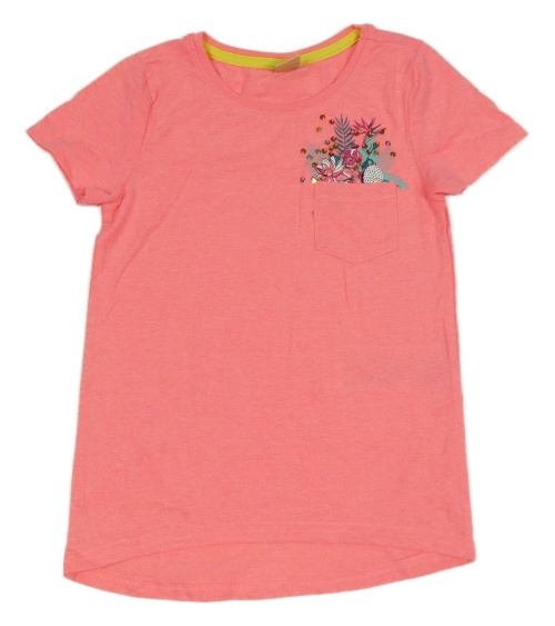 Neonově růžové tričko s kapsou a listy Kiki&Koko