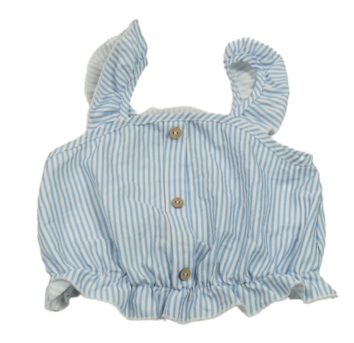 Bílo-modrý pruhovaný lehký crop top s volánky