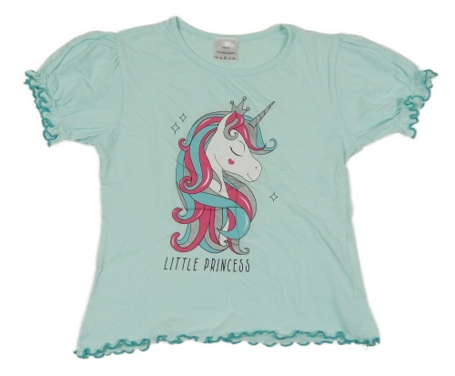 Tyrkysové tričko s jednorožcem a kroucenými lemy
