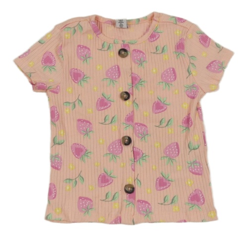Růžové žebrované tričko s jahodami a knoflíky Dopodopo