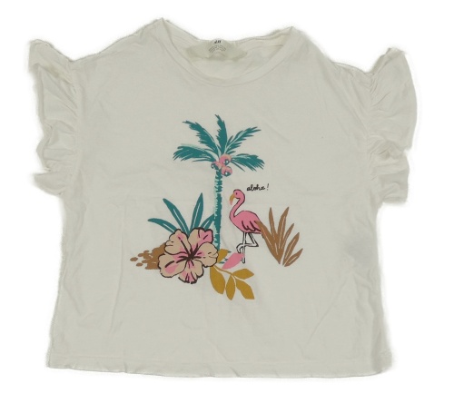 Bílé tričko s palmou a plameňákem a volánky H&M