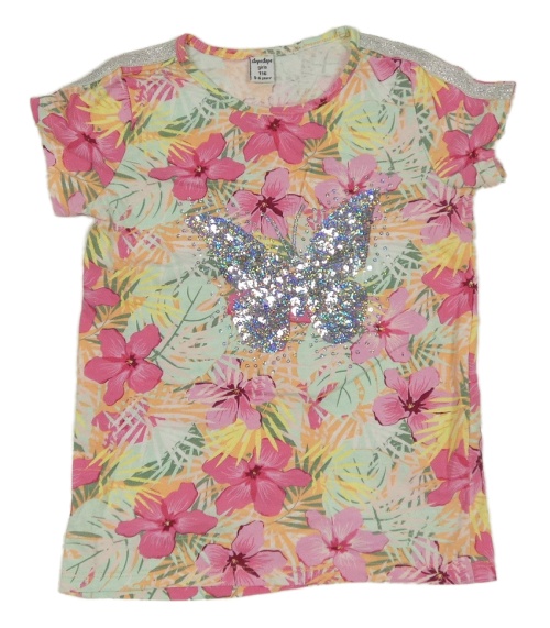 Barevné květované tričko s motýlem z flitrů Dopodopo
