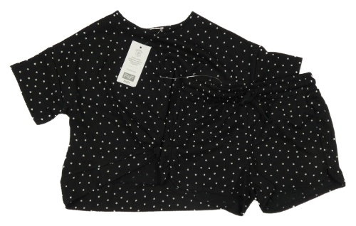 Nové - 2Set - Černo-bílé puntíkaté vzorované oversize tričko s překřížením + kraťasy F&F