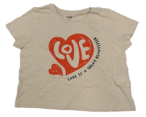 Béžové crop tričko se srdíčky a nápisy sinsay