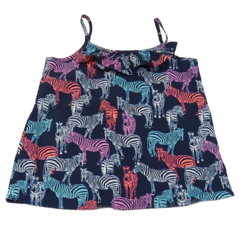 Tmnavomodro-barevný top se zebrami a volánkem Bluezoo