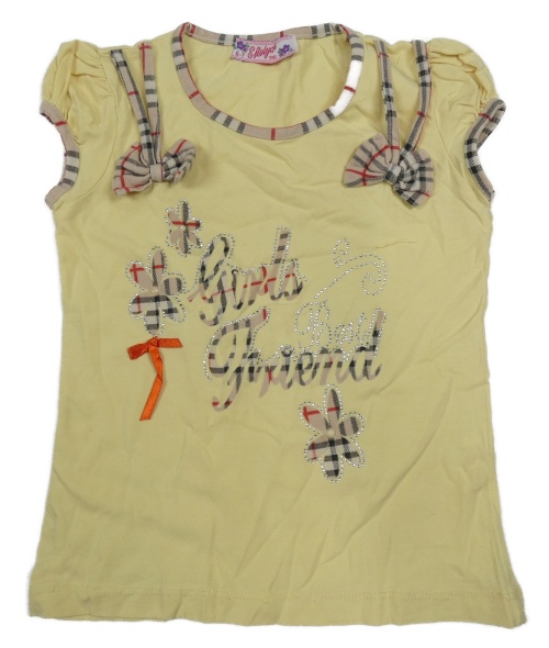 Žluto-béžové tričko s nápisem a 3D mašlemi