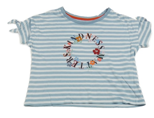Modro-bílé pruhované crop tričko s nápisem a kytičkami TU
