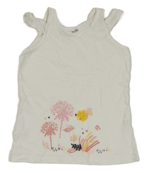 Bílý melírovaný top s kytičkami a motýlky a volánky s madeirou STOP+GO