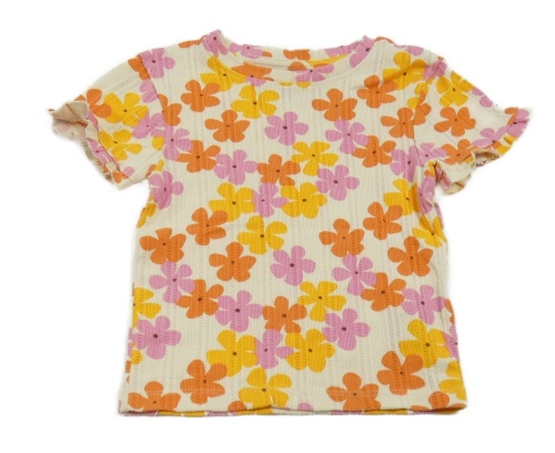 Smetanovo-růžovo-oranžové květované žebrované tričko Primark