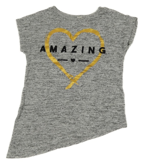 Šedé melírované úpletové asymetrické tričko se srdíčkem Tu