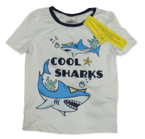 Nové - bílo-tmavomodré tričko se žraloky a nápisy SHEIN