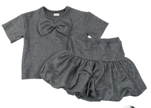 2 set - šedo-stříbrné třpytivé crop tričko + šedo-střírbrná sukně F&F