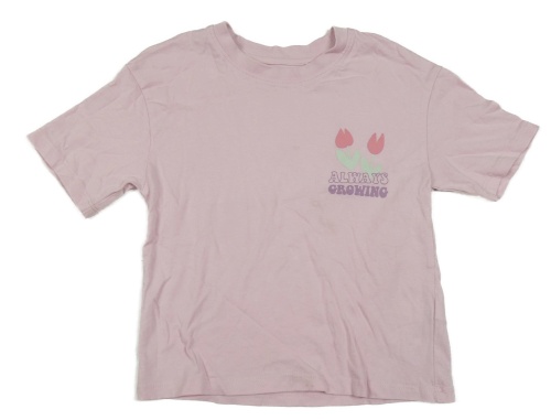 Světlerůžové tričko s tulipánky a nápisy PRIMARK