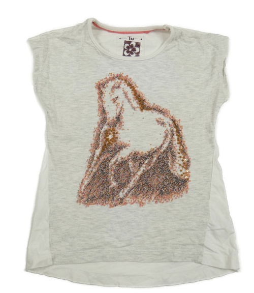 Světlešedo-bílé melírované tričko s koníkem a flitry Tu