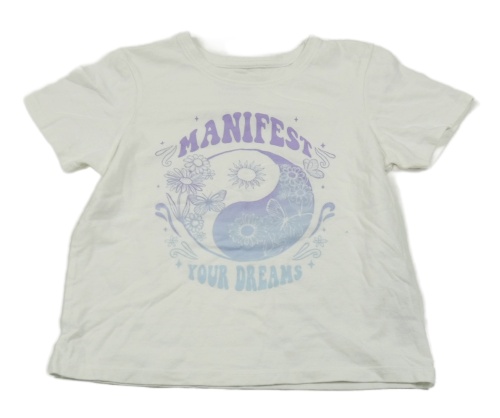 Bílé crop tričko s motýlky a kytičkami a nápisy PRIMARK