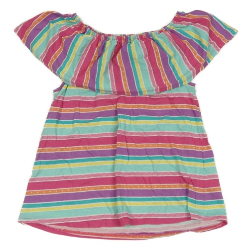 Růžovo-fialovo-barevná pruhovaná tunika s volánkem Topolino