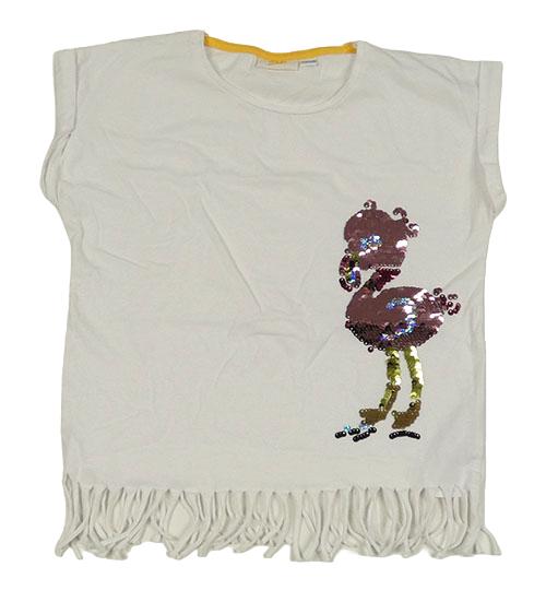 Bílé tričko s plameňákem z překlápěcích flitrů a třásněmi Kids