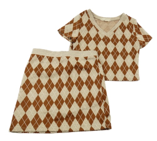 2set - Béžovo-hnědé kárované úpletové crop tričko + sukně
