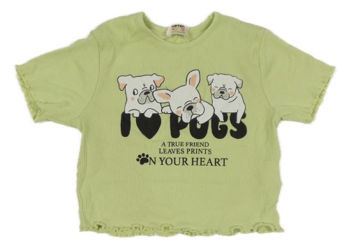 Zelenkavé žebrované crop tričko se psy