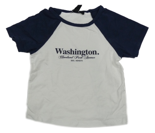 Bílo-tmavomodré crop tričko s nápisem New Look