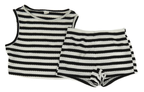 2Set - Černo-bílý pruhovaný úpletový crop top + kraťasy SHEIN