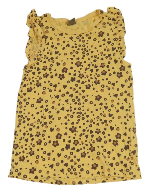 Světleoranžovo-tmavohnědé puntíkaté tričko s květy a srdíčky a volánky little kids