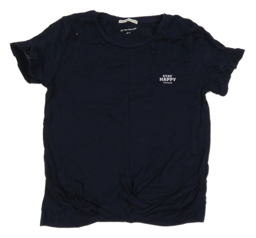 Tmavomodré crop tričko s nápisem a řasením Tom Tailor