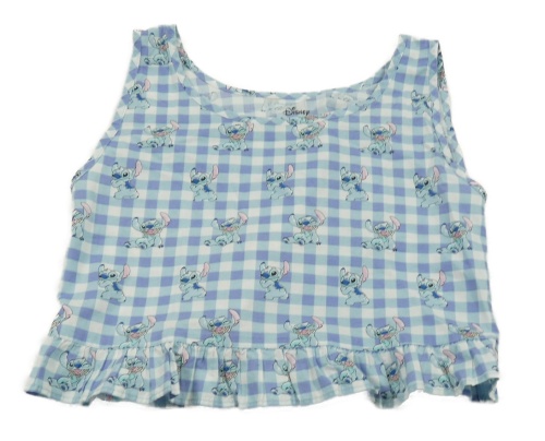 Modro-bílý kostkovaný crop top se Stitchem Primark