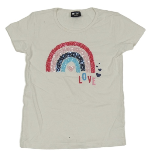 Bílé tričko s duhou z flitrů a srdíčky a nápisem FRY DAY