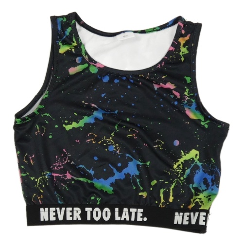 Černo-barevný vzorovaný sportovní crop top s nápisy