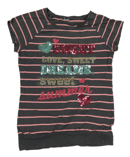 Tmavošedo-růžová pruhovaná tunika s nápisy a srdíčky a flitry