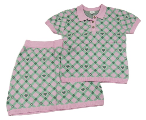 2set - Růžovo-zelené kárované pletené polo tričko se srdíčky + sukně River Island