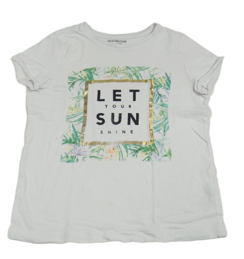 Bílé tričko s nápisy a listy