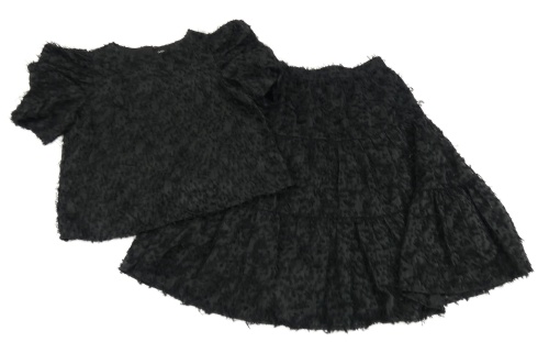 2set - Černé crop tričko s třásněmi + sukně Zara