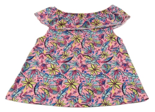 Neonově růžové tričko s listy a volánem Y.F.K.