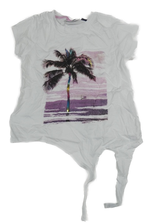 Bílé tričko s palmou s flitry Pocopiano
