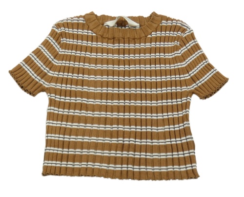 Hnědo-bílé pruhované žebrované pletené crop tričko H&M