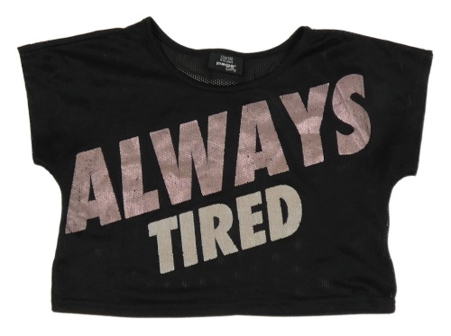 Černé síťované crop tričko s nápisem Page one young