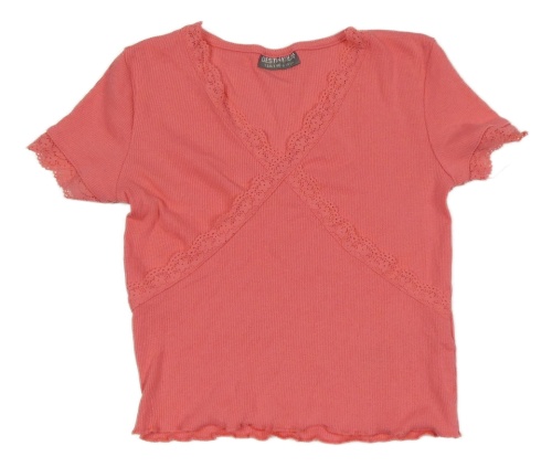 Růžové žebrované crop tričko s krajkou