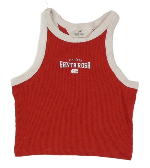 Červený žebrovaný crop top s nápisem H&M