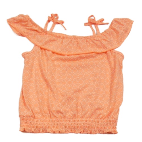 Neonově oranžový top se šupinkami a volánkem YIGGA