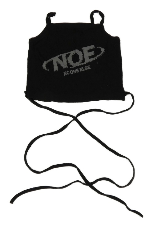 Černý žebrovaný crop top s nápisem a šněrováním