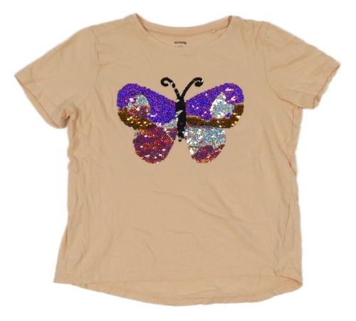 Světlerůžové crop tričko s motýlkem z flitrů Sinsay